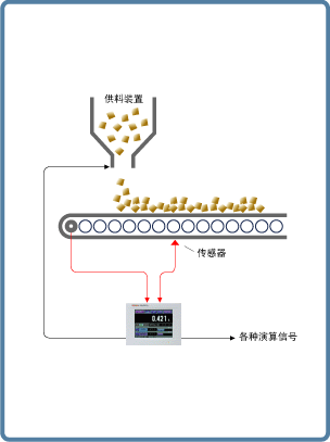 通过输入设置在皮带下面的传感器的重量信号和速度传感器的速度信号,可以输出或者是显示瞬间输送量,累计输送量,物料密度,负载率等信息。